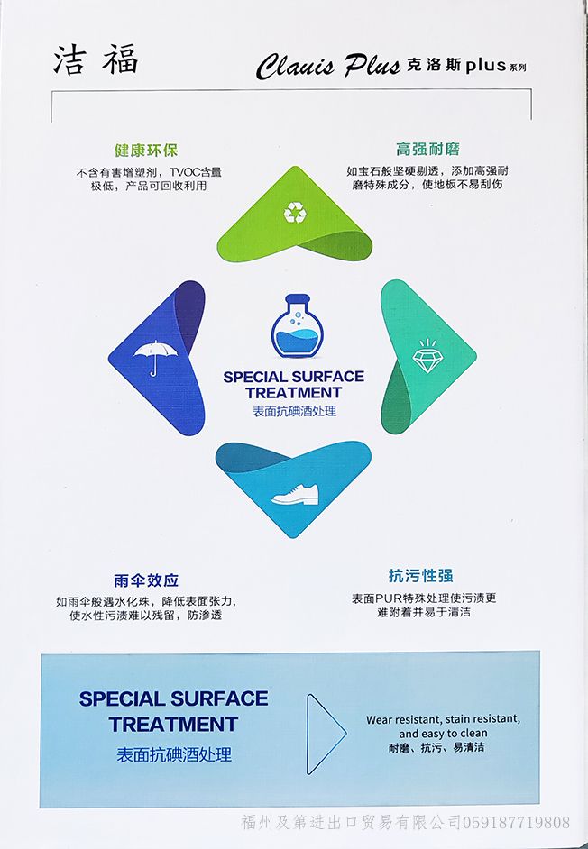 福州及第進出口貿易有限公司,專營 潔福地板 阿姆斯壯塑膠地板 LG塑膠地板 耐迪塑膠地板 其它品牌地板 輔料 等業務,有意向的客戶請咨詢我們,聯系電話:0591-87719808、83206468、13805067419(盧總)、13609539126(邱總)